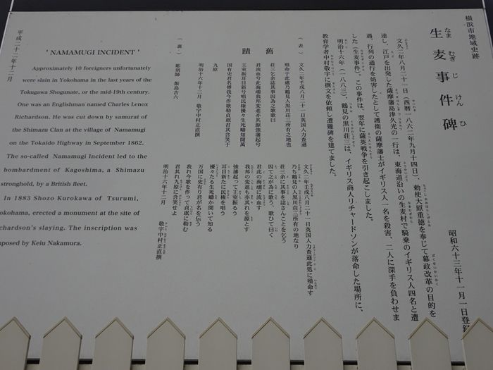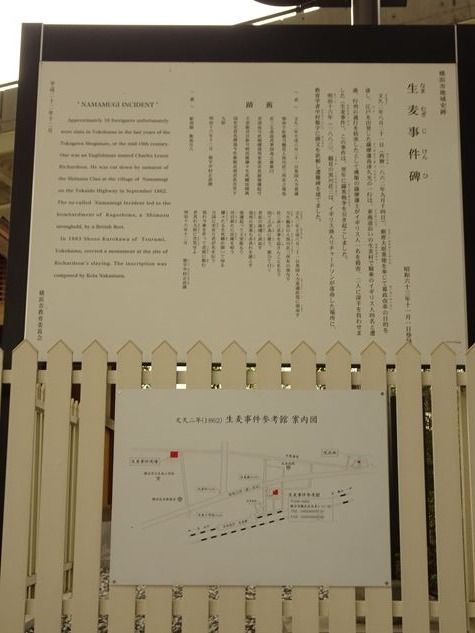 『生麦事件碑』と『生麦事件参考館 案内図』