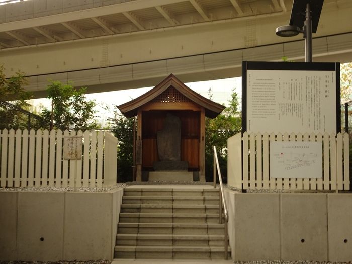 そして旧東海道に戻ると左手に『生麦事件碑』が高速道路の橋梁下に建っていた。