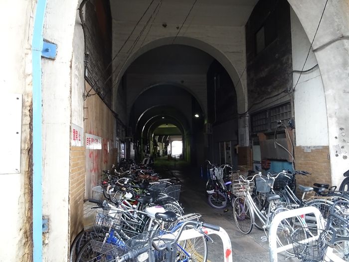 JR国道(こくどう)駅舎の下には多くの自転車が。