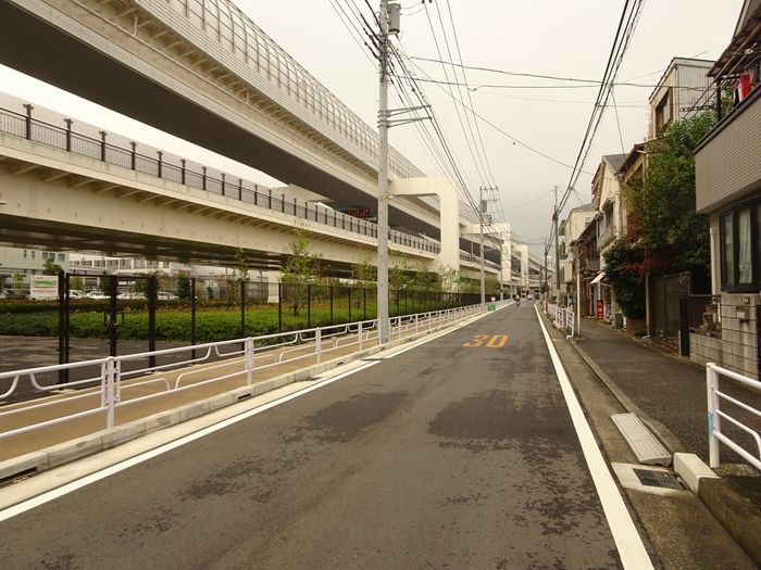 横浜北線及び岸谷生麦線の高架下緑地に沿って歩く。