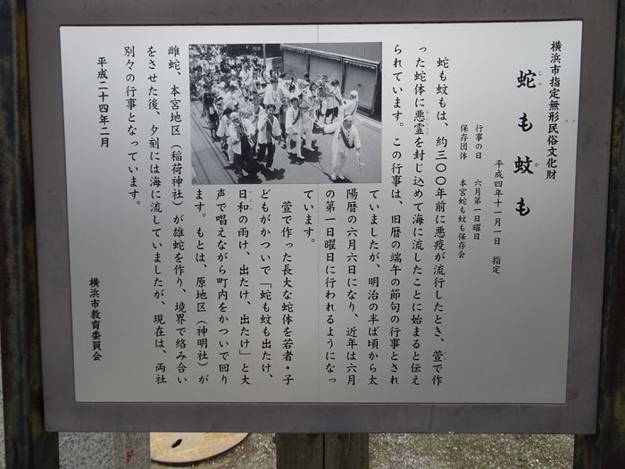 道念稲荷社に数百年前から伝わる「蛇も蚊も」祭りは、横浜市の無形民俗文化財に指定。