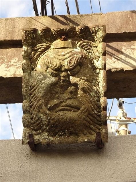 造り出して正面向きの三猿像をのせ、全体が下太りのため安定感が保たれています。