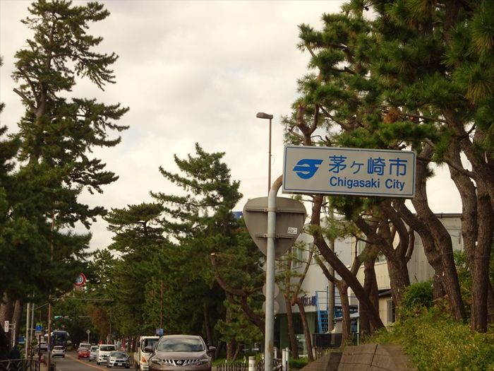 そして「大山街道入口信号」の先の松並木の中の藤沢市と茅ケ崎市と市境を通過。