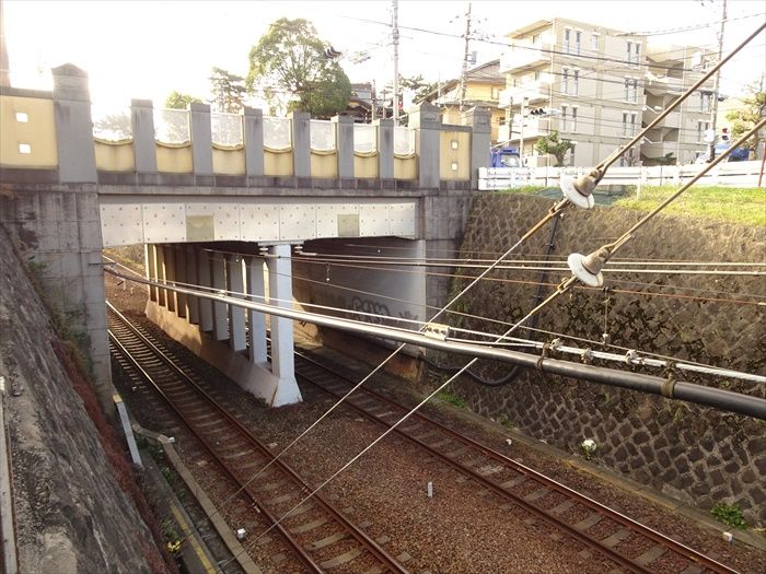 旧東海道への坂道から小田急線、そして旧東海道の伊勢山橋。