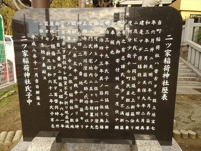 玉垣ヲ奉献ス  平成八年十一月吉日新築ス 二ツ家稲荷神社氏子中」と。