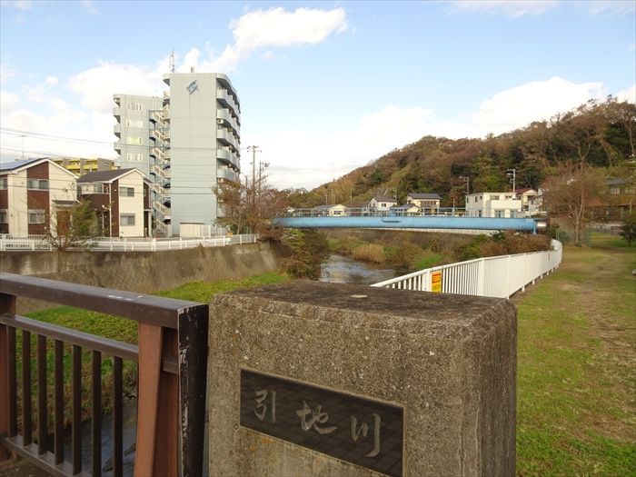 引地川に突き当り左折すると県道43号線の右側にあるのが引地川に架かる引地橋。