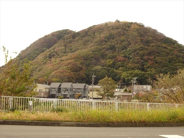 右手前方に『高麗山』の雄姿が。そして高麗山の山頂にあるのが「湘南平」。