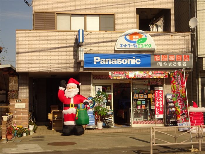 電器屋さんの店頭には早くもサンタクロースが。この日は12月1日(土)。