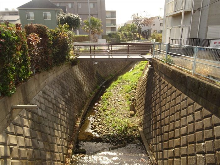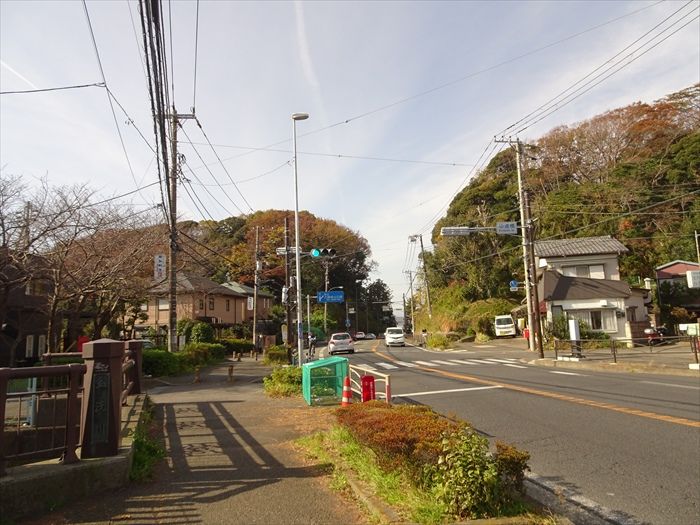 手前に大磯町西小磯を流れる血洗川に架かる切通橋『切通橋』が見えて来た。