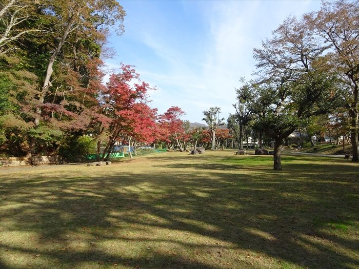 かつて小磯城と呼ばれる山城が築かれていた場所で、園内には掘割の跡や