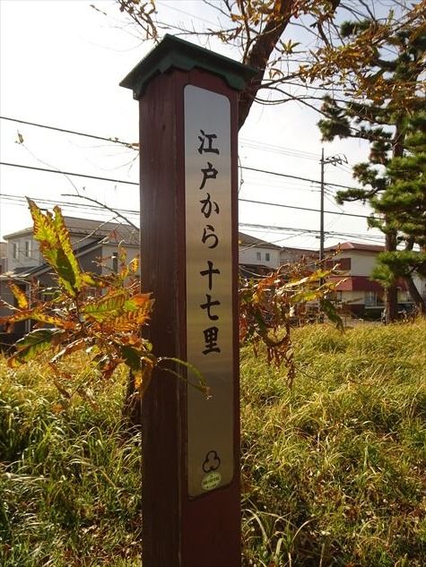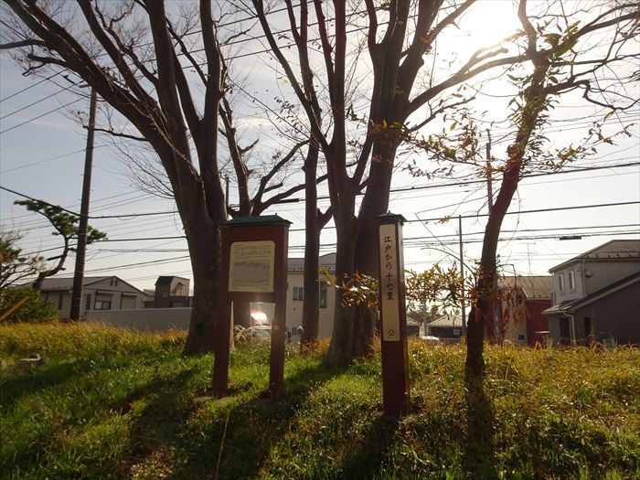 現在説明板のあるものは2002年に復原された一里塚で、実際は江戸方向に200mの位置に
