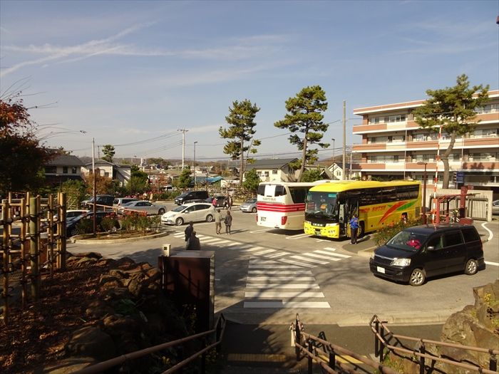 『旧吉田茂邸 駐車場』には休館にもかかわらず大型観光バスが2台も。