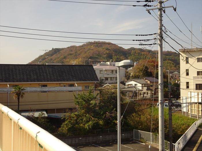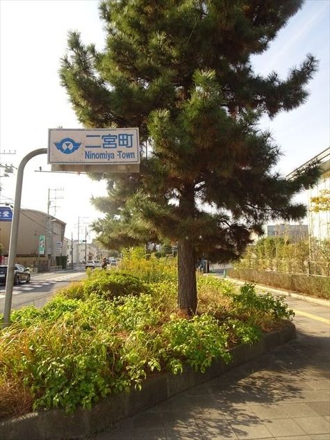 二宮交差点の右前方に早咲きの名の花が咲く人気のスポット「吾妻山」が見えた。