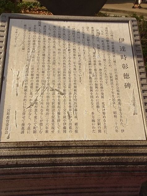 伊達時は二宮駅の開設や秦野―二宮間の交通網の整備、郷土の子どもたちの教育に尽くした。