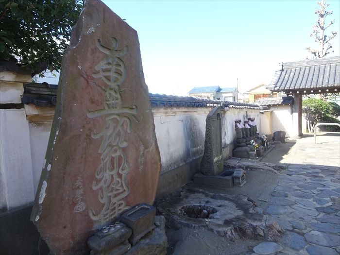 『南無妙法蓮華経』と刻まれた石碑の先にも寺が。