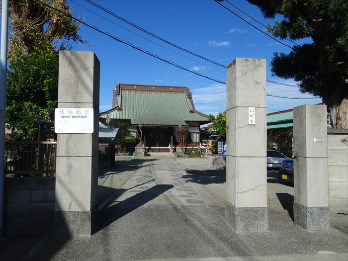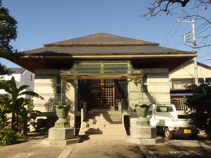 臨済宗大徳寺派の寺。寄棟造り屋根、平入り、流れ向拝。