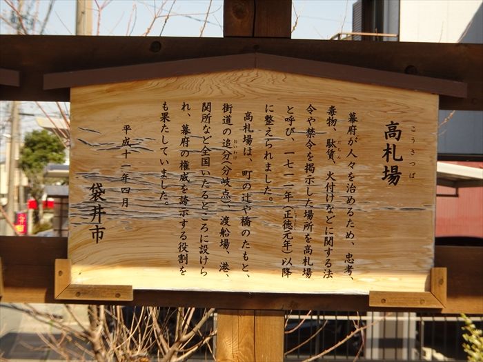 高札場は、町の辻や橋のたもと、街道の追分(分岐点)、渡船場、港、関所など
