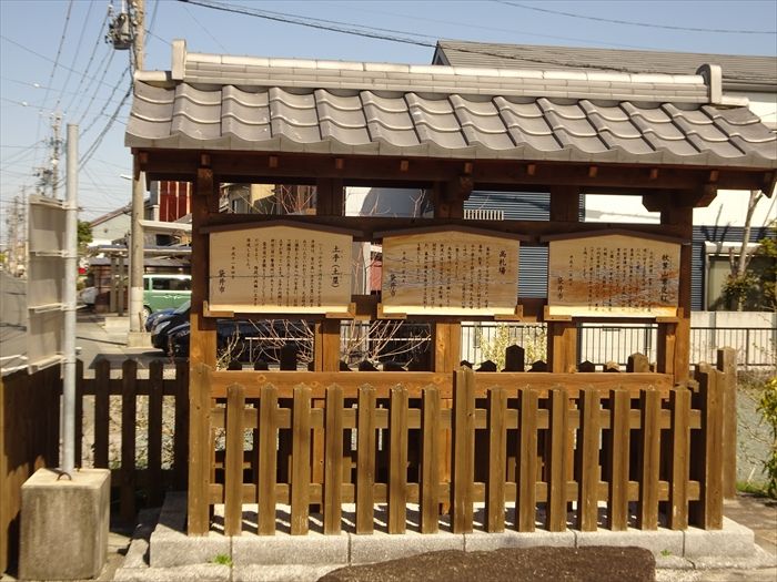 この橋が袋井宿の西の端にあたり、「東天領袋井宿 従是西掛川藩領川井村」と書かれた