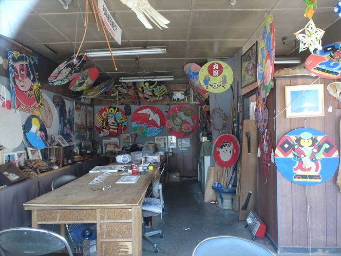 袋井の名物の『袋井丸凧』が壁にズラッと。