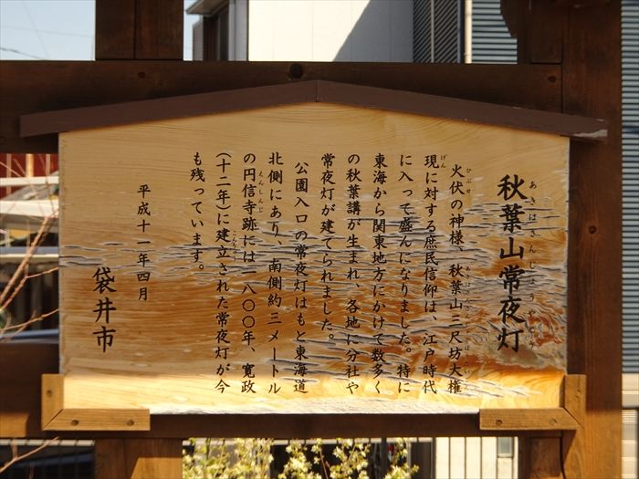 各地に分社や常夜灯が建てられました。公園入口の常夜灯はもと東海道北側にあり、