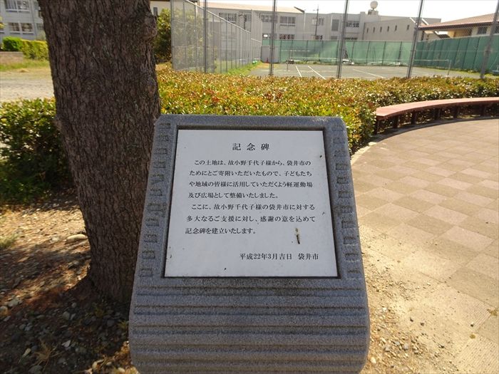 左手にあったのが、故小野千代子様から寄付された用地への感謝の『記念碑』。