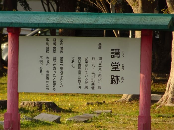 「基壇 間口29.4m、奥行18.3mの基壇が築かれているが、規模は未調査のため