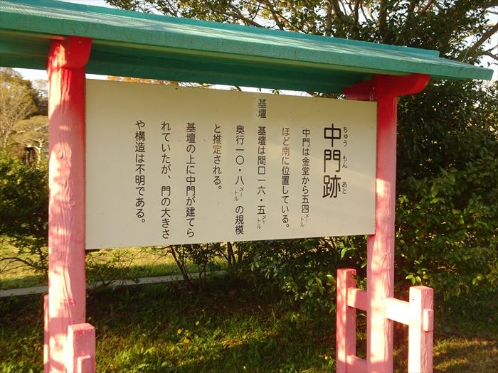 基壇の上に中門が建てられていたが、門の大きさや構造は不明である」
