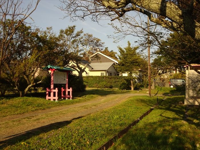 石段は正面中央に幅4.5mで7段のうち3段が残されていたが、今は埋め戻してある。」