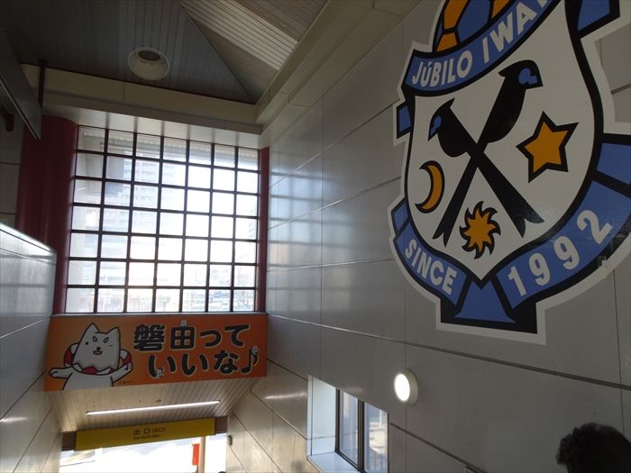 階段の壁にはジュビロ磐田のエンブレムが。