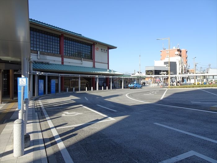 駅前ロータリーと磐田駅舎。