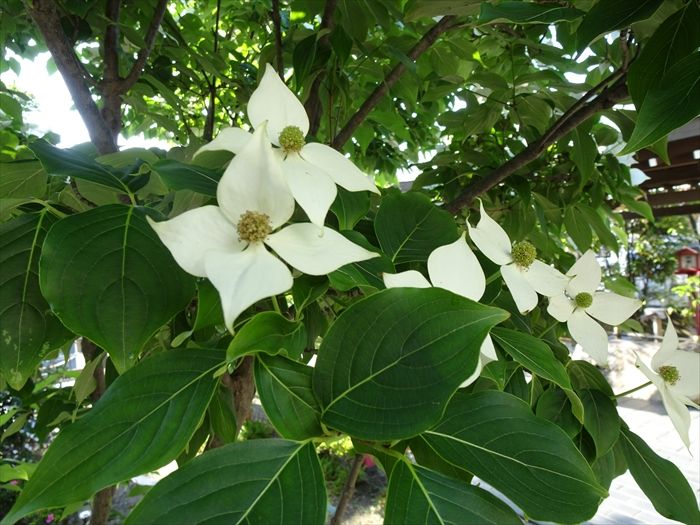 階段の途中右手には『ヤマボウシ(山法師、山帽子)』が可憐に。