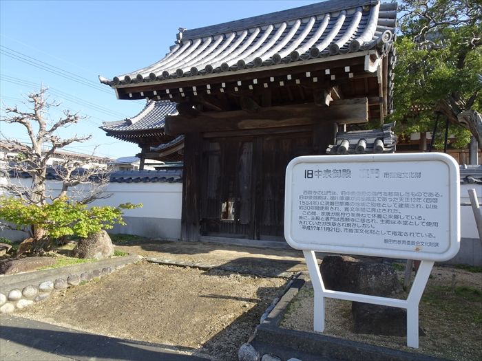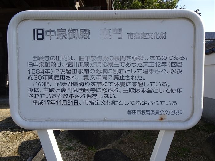 「西願寺の山門は、旧中泉御殿の裏門を移築したものである。旧中泉御殿は、徳川家康が