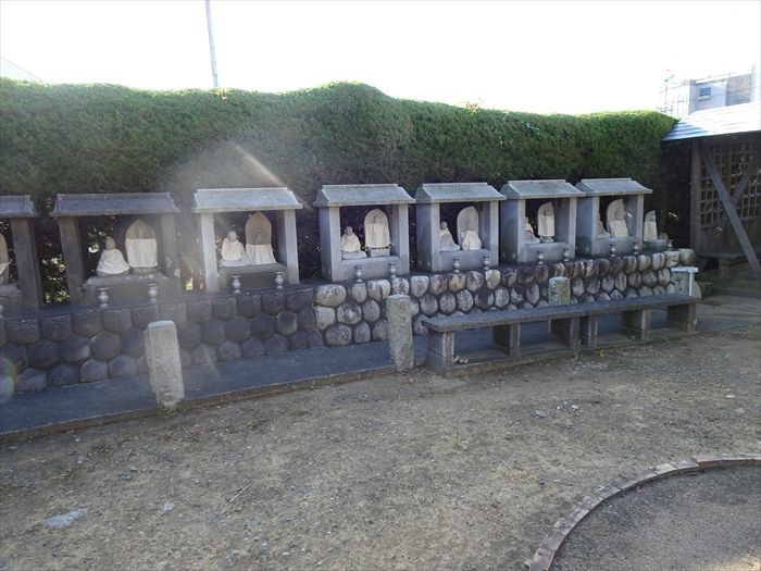 『三仭坊本堂』側にあった小さな祠に安置された石仏群。