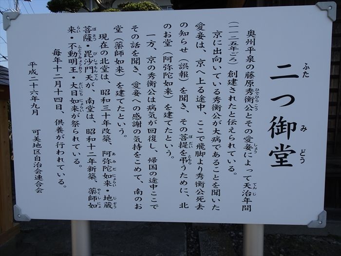 南堂は、秀衡が愛妾への感謝の気持ちを込めて建立したもので、御堂には