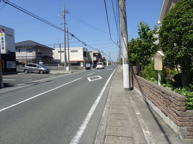 両側に住宅街が続く旧東海道。
