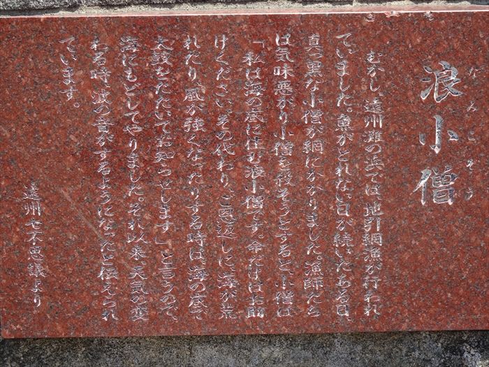 松並木が終わった所にあり、小太鼓を抱えた可愛い小僧が四角い石の上に座っていた。