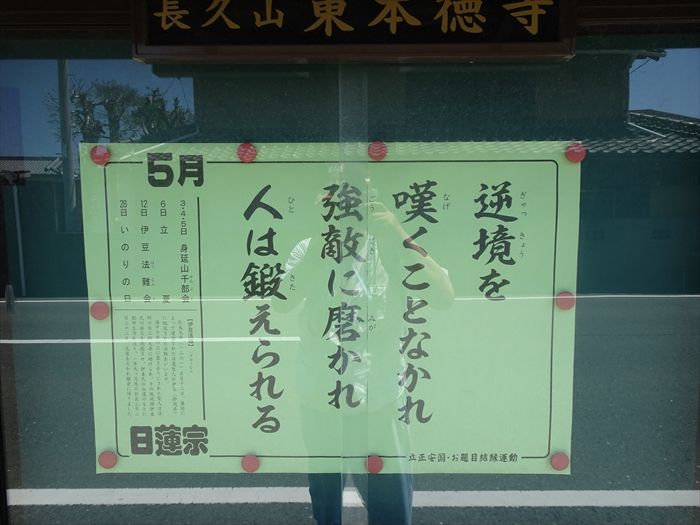 入口に『髭題目碑』と『海中出現 釈迦牟尼佛安置碑』が立っていた。