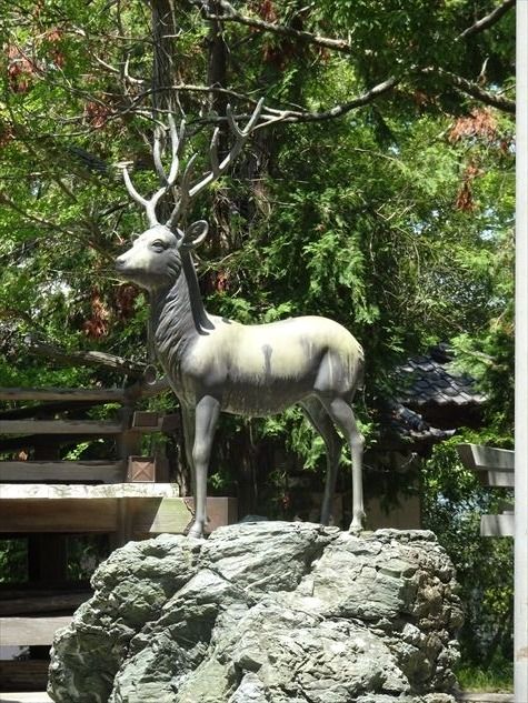 狛犬に代わり雌雄の狛鹿を置く。いかにも春日社らしい。