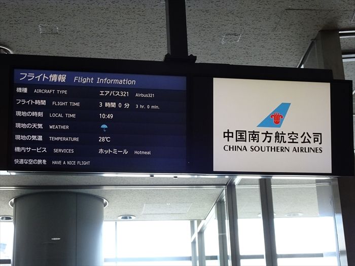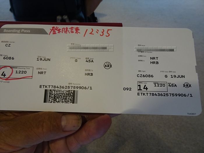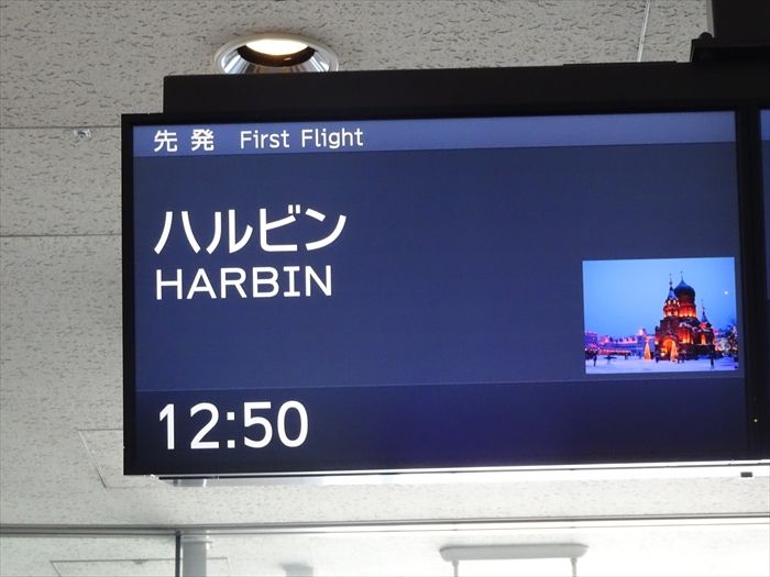 FLIGHTは中国南方航空12:50発CZ-6086便のハルビン(HARBIN)行き。