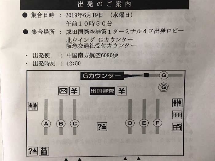 そして阪急交通社受付カウンターで今回の添乗員の男性から説明を受け、eチケットと