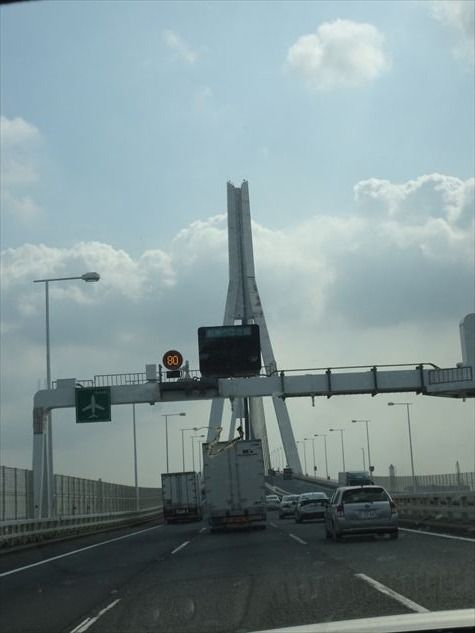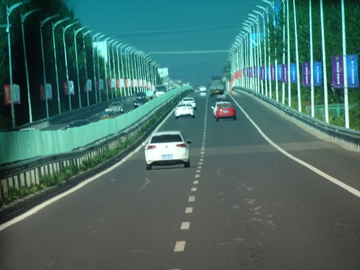 マイクロバスのフロントガラス越しにハルビンの『机場高速道路』を。