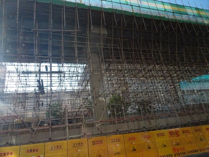 そして工事中の高架橋脚の支保工と足場パイプ。