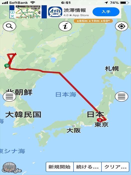 ロシア領上空から進路を西に変更し、中国領土上空を長春方面に向かう。