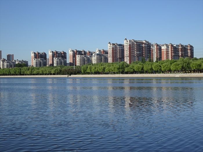 そして『伊通河』の流れと川岸の住宅街。