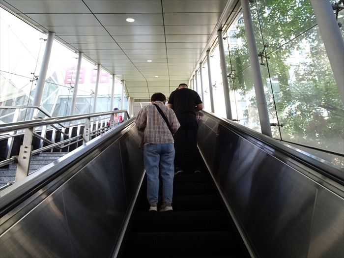 エスカレーターで駅構内へ向かう。