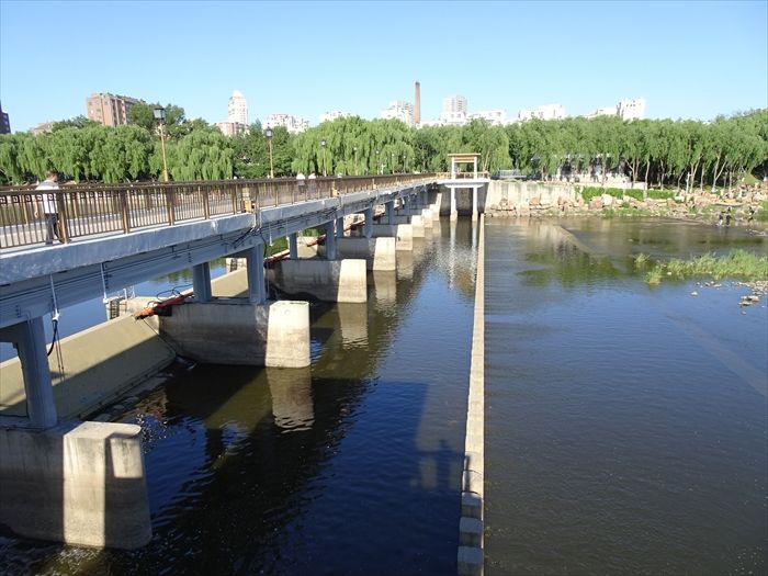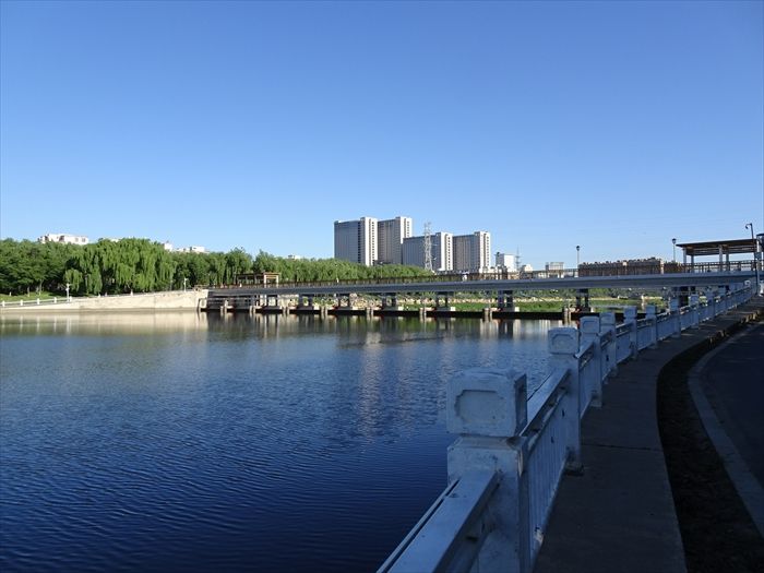 6:30にホテルを出て近くを流れる『伊通河』岸の散策に向かう。