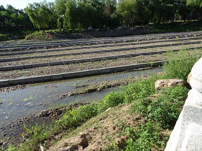 この場所には何を植えるのであろうか?日本のワサビ田の如き光景。