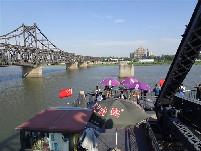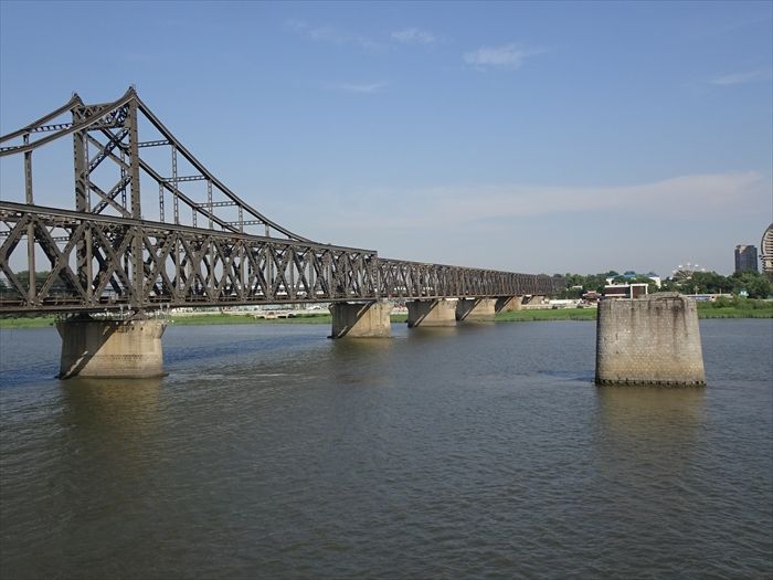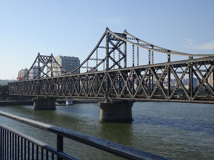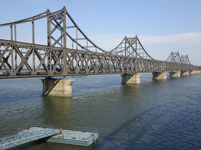 鴨緑江断橋は1909年に建設された鉄道用のトラス橋。