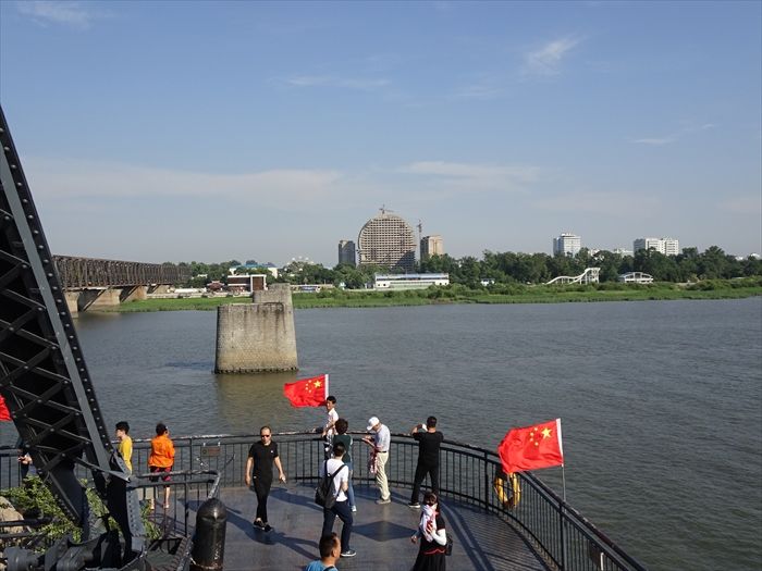 『鴨緑江断橋』を北朝鮮方向に進む。