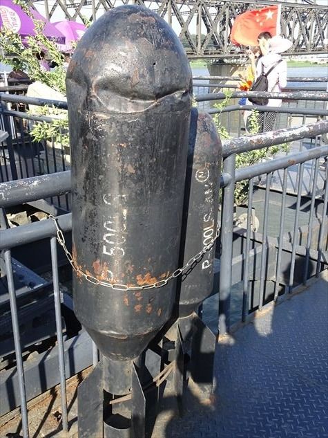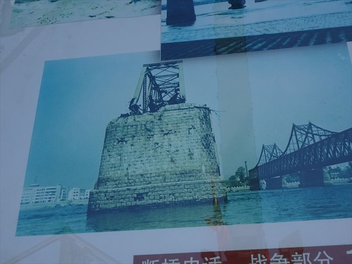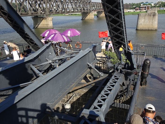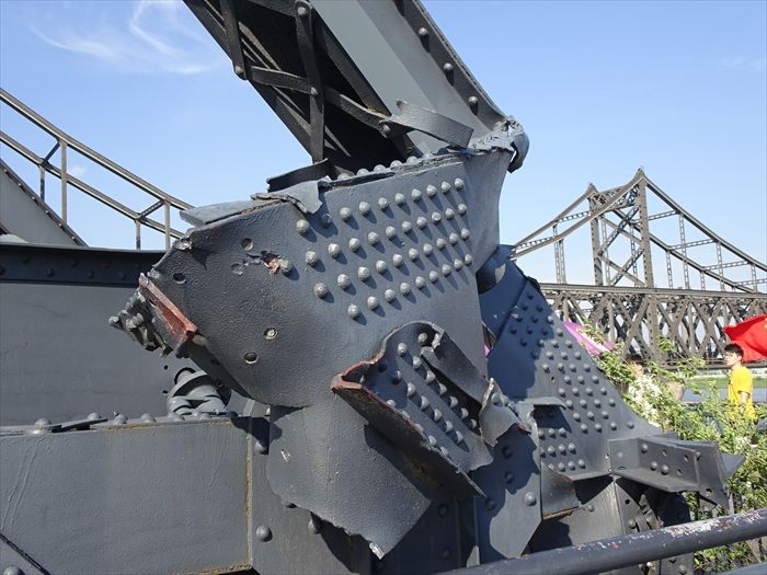 鴨緑江断橋と呼ばれて現在はプロパガンダ用?に整備されており、爆撃を受けた時のままの